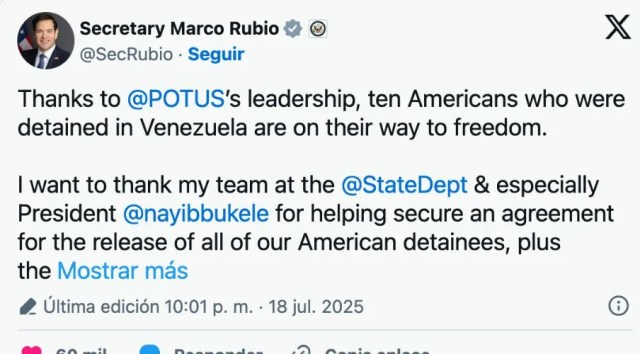 Für jeden abgeschobenen Venezolaner zahlt das Trump-Regime Geld an El Salvador – Dollar, die direkt in Bukeles System fließen. Doch ein Großteil der Inhaftierten, größtenteils unbescholtene Menschen, dienten längst nicht mehr der öffentlichen Sicherheit, sondern nur noch einem politischen Kalkül. Sie waren Teil eines geplanten Tauschhandels, der letzten Monat bzw teils schon im Juli 2025 vollzogen wurde – was bedeutet: Bukele kassierte Geld für Menschen, die er jetzt freigelassen hat, da das Geschäft zustande kam. Es wäre fast komisch, wenn es nicht so eiskalt, so zynisch, so perfide wäre, Bukele hat richtig abgeräumt. Nayib Bukele bestätigte bereits im April mit einem Tweet, der mehr enthüllte als beabsichtigt. Es war kein diplomatisches Schreiben, keine vertrauliche Note zwischen Staatenlenkern. Es war ein öffentlicher Post auf X, wo der Präsident El Salvadors mit kalkulierter Kälte den moralischen Tauschhandel verkündete: 252 venezolanische Migranten, abgeschoben aus den USA und ohne Prozess in El Salvador inhaftiert, im Austausch gegen 252 politische Gefangene in Venezuela.