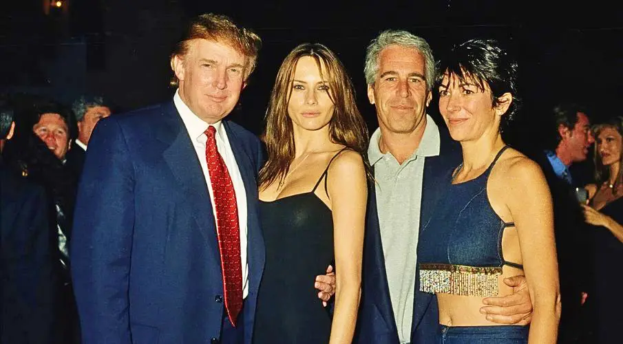 Donald Trump, Melania Trump, Jeffrey Epstein, Ghislaine Maxwell at a party in Mar a Lago in Palm Beach February 12, 2000