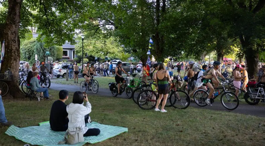 Offizielle Zahlen gibt es keine, die Polizei sprach von „mehreren hundert Teilnehmern“, Beobachter von über tausend. Die Organisatoren hatten die genaue Route bewusst geheim gehalten, um Störungen zu vermeiden. Das hinderte rechte Gegenprotestierende nicht daran, sich an verschiedenen Punkten der Innenstadt zu versammeln, teilweise mit Transparenten wie „God Hates Sin“ und „Repent, Portland!“. Ein Video, das auf sozialen Medien viral ging, zeigt einen Mann mit Bibel in der Hand, der am Straßenrand steht und ruft: „Shame on you!“ – während hinter ihm eine Gruppe junger Frauen lachend auf Fahrrädern vorbeizieht, bemalt mit den Worten: „We were born naked. You added shame.“