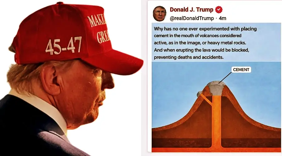 Der angebliche Truth-Social-Post von Donald Trump über das „Zementieren von Vulkanen“ ist ein gutes Beispiel. Das Bild wirkte formal korrekt: Profilbild, Benutzername, typisches Layout. Doch ein Abgleich mit dem tatsächlichen Konto ergab keinen entsprechenden Eintrag. Eine Rückwärtssuche zeigte Versionen des Textes bereits aus dem Jahr 2022 – damals ohne Bezug zu Trump. Das angebliche Präsidenten-Posting war nachträglich konstruiert worden. Zudem widerspricht der Inhalt grundlegender Geologie: Vulkane besitzen bereits massive Gesteinsdeckel. Magma bricht durch kilometerdicke Erdschichten. Ein Betonpfropfen an der Oberfläche würde physikalisch nichts verhindern.